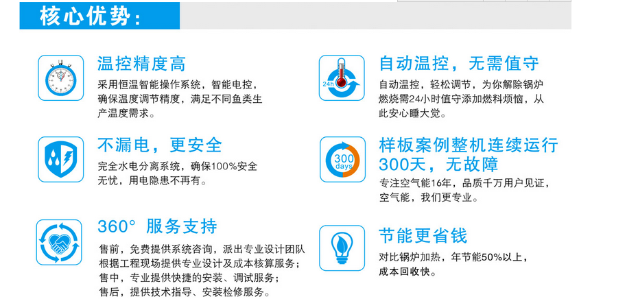 一体式设计,以空气为能源,从空气中吸收热量,以普通电热水器相比可以节约70%的碳排放量,既可以烧热水又可以浴室除湿。双核设计,工作中可以优先采用热泵模式,能效比高,换热速度快,用户在需要快速热水时可以选择瞬热模式(热泵和电加热一起工作)。超静音旋转式压缩机与螺旋隔音进风设计,用水量大时可以启动电辅。2012,针对目前家用市场,房价比较贵,安装一台家用占去了近一个平方的位置,而且很多房地产商在建造房子时,只给空调外机预留了安装位置,没有留空气能热水器外机的位置,伴随着高层建筑越来越多的,这又增加了安装难度和安全性。全克一体机在这种情况下应运而生。全克空气能家用一体机是指将主机和水箱结合在一起,一般是水箱在下,压缩机在上方,这样就像冰箱一样不需要安装,买回家直接插上电源即可使用,解决了空气能热水器安装难的问题。 目前很多厂家一体机都是采用圆筒来做,蒸发面积很小,电机和压机相对较小,位时间内经过蒸发器热量较少,加热时间较分体机长,容易混水,我们通过技术改进,采用双胆设计,冷水补入第一个水箱再进第二个水箱,双胆加热,减低了冷水混水,提高了出水量,因外观设计的不同,加大了蒸发、换热面积,大大的提高了制热量;相信我们技术的改进,客户会改变以前对一体机的一些看法,一体机会随着市场越来越成熟。上面的改进,有效的降低了安装面积,外形美观,有品位,档次高。